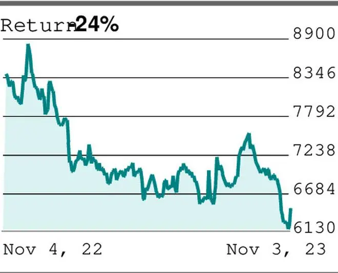 Atul’s stock has been in a steady downtrend since August last year. It began the decline after facing resistance at ₹9,500. A fortnight ago, the scrip slipped below a support at ₹6,550, hinting at the start of the next downswing. But there could be a minor rally to ₹6,600 this week. Post this, Atul’s stock price could resume the fall and touch ₹5,850 in the near term.